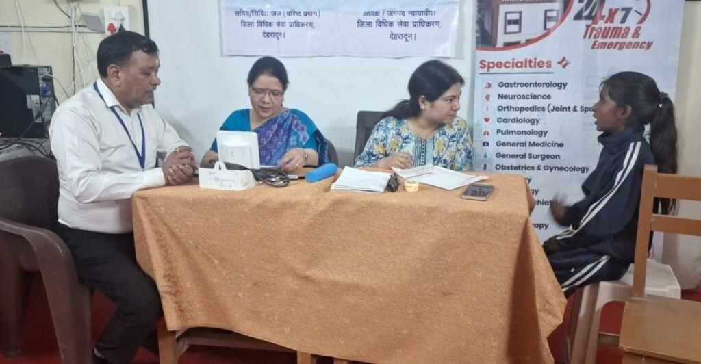 देहरादून। उत्तराखंड राज्य विधिक सेवा प्राधिकरण नैनीताल के आदेश अनुसार एवं सचिव जिला विधिक सेवा प्राधिकरण देहरादून के निर्देशन में आज प्राविधिक कार्यकर्ता उमेश्वर सिंह रावत द्वारा “विश्व स्वास्थ्य दिवस” के अवसर पर कनिष्क सुपर स्पेशलिटी अस्पताल देहरादून के डॉक्टर मुकेश कुमार गुप्ता एवं डॉक्टर रितु गुप्ता के सहयोग से स्थानीय गोरखा मिलिट्री इंटर कॉलेज गढ़ी कैंट देहरादून में एक निशुल्क स्वास्थ्य शिविर का आयोजन किया गया शिविर में डॉक्टर सत्या सागर एवं उनकी टीम द्वारा सर्वप्रथम छात्र छात्राओ को स्वास्थ्य जागरूकता व्याख्यान दिया गया। जिसके अंतर्गत बच्चों को स्वस्थ रहने के टिप्स दिए गए बच्चों को बताया गया कि आप गर्मी के सीजन में पर्याप्त मात्रा में पानी पिए एव सुबह घर से जब स्कूल आए तो नाश्ता करके अवश्य आए अक्सर खाली पेट आने पर प्रार्थना के समय खड़ा रहने पर बच्चों को अक्सर चक्कर आ जाते है । एवं मोबाइल का ज्यादा प्रयोग ना करे इससे आपकी आंखे हमेशा के लिए खराब हो सकती हैं साथ ही आंखों में ड्राइनेस भी हो सकती है। व्याख्यान के उपरांत बच्चों का स्वास्थ्य परीक्षण किया गया इसके अंतर्गत बच्चों का हीमोग्लोबिन एवं वजन भी नापा गया साथ ही विद्यालय की प्रधानाचार्या के साथ-साथ विद्यालय के समस्त स्टाफ का शुगर, बीपी आदि का परीक्षण किया गया। शिविर में कनिष्क अस्पताल की श्रीमती प्रियंका पैनूली एवं उनकी टीम के साथ-साथ कॉलेज की प्रधानाचार्या श्रीमती दीपाली जुगराण कॉलेज का समस्त स्टाफ एवं 70 छात्र-छात्राओं ने प्रतिभाग किया।